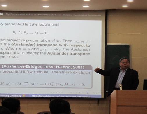 4月22日,应公司best365体育亚洲邀请,南京大学黄兆泳教授来公司在教学9号楼C101学术报告厅作了题为《Homological Aspects of the (Adjoint) Cotranspose》和《Minimal Right Determiners of Irreducible Morphisms in String Algebras》的学术报告。报告会由best365体育亚洲官网董事长刘仲奎教授主持,相关专业教师、研究生60余人参加了此次报告会。