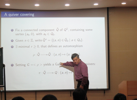报告中,刘石平教授深入细致地讲解了根方零的域上的局部有界线性范畴上的有限支撑模的有界导出范畴存在伽罗瓦覆盖,并展示了将这种覆盖应用于有限维代数的有限生成模的有界导出范畴上来完全地描述不可分解对象与A-R序列的组成的过程。