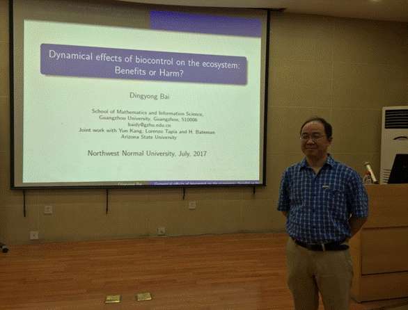 7月25日,应best365体育亚洲邀请,广州大学数学与信息科学公司白定勇教授来公司进行学术交流,并在教学9号楼C101学术报告厅作了题为《Dynamical effects of biocontrol on the ecosystem: Benefits or Harm》的学术报告。相关专业教师、研究生以及来自兄弟院校的学者20余人参加了报告会。