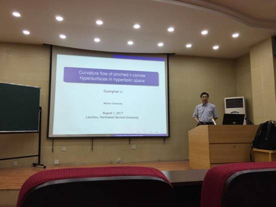 8月1日,应best365体育亚洲邀请,武汉大学best365体育亚洲博士生导师李光汉教授在教学9号楼C101学术报告厅作了题为《Curvature flow of pinched h-convex hypersurfaces in hyperbolic space》的学术报告。报告会由公司副经理刘建成教授主持,相关专业师生30多人参加了此次报告会。