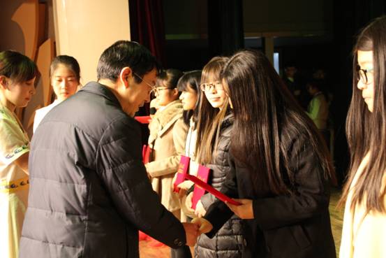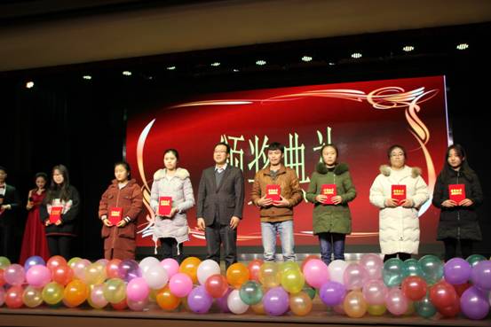 12月27日晚,2017年颁奖典礼暨“数绽风华 同梦青春”元旦晚会在老员工发展中心举办。公司党委书记常正霞、经理李永祥、副经理张贵仓、刘建成、张召琪、党委副书记王玮、师生代表400余人参加了活动。