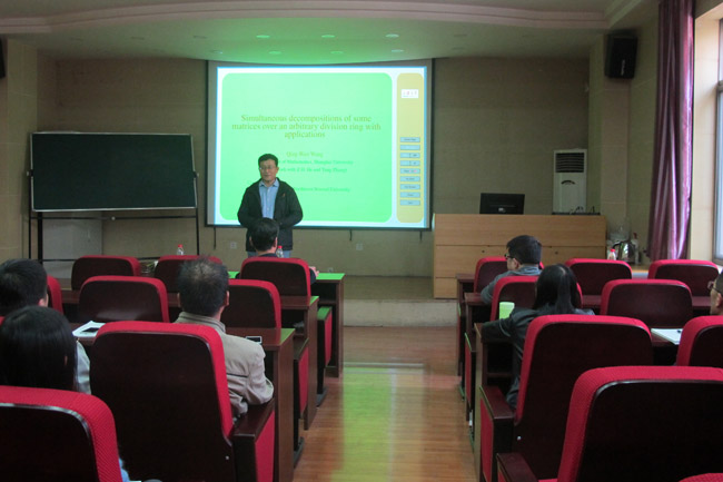 3月29日,应公司邀请,上海大学博士生导师王卿文教授来公司进行学术交流。王卿文教授在教学9号楼C101学术报告厅作了题为《Simultaneous decompositions of some matrices over an arbitrary division rings with applications》的学术报告。报告会由best365体育亚洲官网董事长刘仲奎教授主持,相关专业师生40多人参加了报告会。