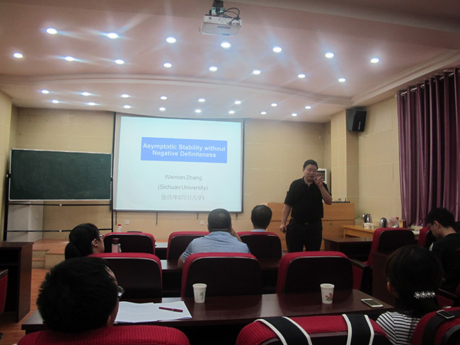 6月24日,应公司邀请,四川大学张伟年教授来公司进行学术交流,并在9号楼C101学术报告厅作了题为《非负定条件下的渐进稳定性》的学术报告。报告会由马如云教授主持,相关专业师生60余人参加了报告会。