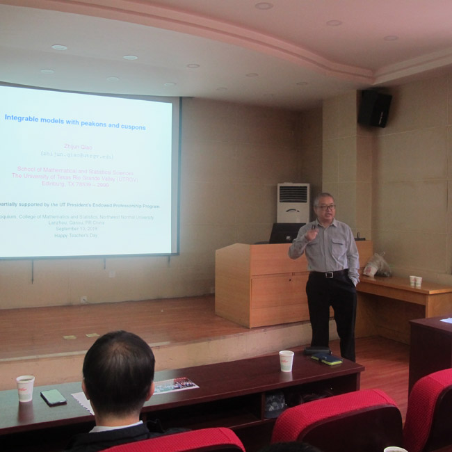 9月10日,应公司邀请,美国德克萨斯大学乔志军教授来公司在9号楼C101报告厅作了题为《Integrable models with peakons and cuspons 》的学术报告。报告会由best365体育亚洲经理李永祥教授主持,相关专业师生60余人参加了报告会。