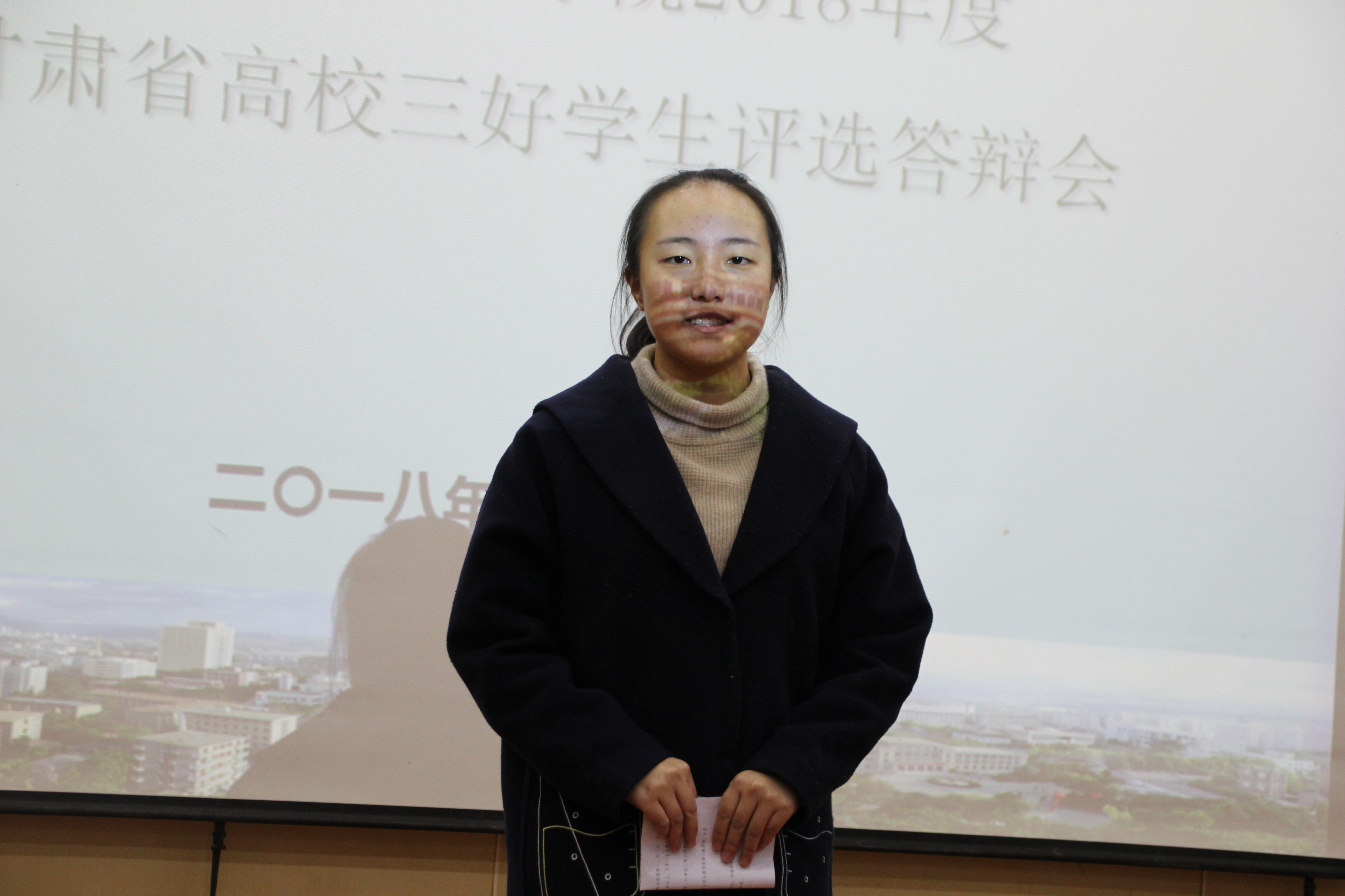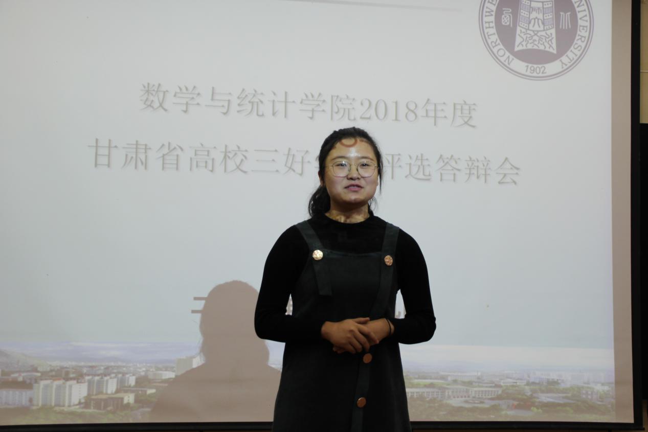 本次答辩采用个人演讲与评委提问相结合的方式,同学们详细介绍了自己在思想、学习、生活、社会实践等方面的情况,展现了在校期间的进步和成长过程,表明了今后的努力方向。经过激烈角逐,最终2015级数学与应用数学1班(云亭班)牛付喜、2015级数学与应用数学4班于圆圆、2016级数学与应用数学1班(云亭班)陈碧霄3名同学入围2018年度甘肃省高校三好员工候选人。