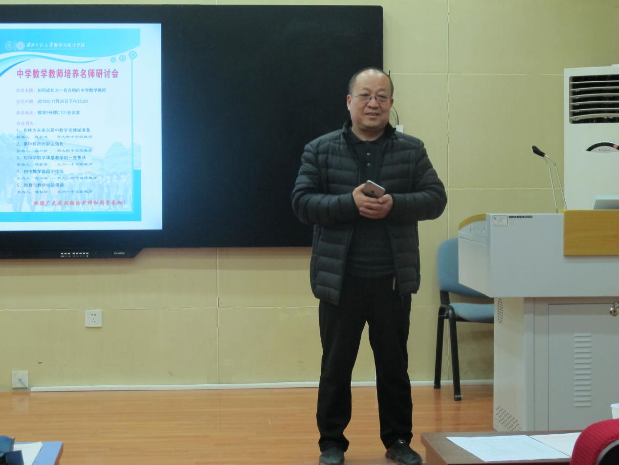 师大二附中高级教师赵兴荣作了题为《初中数学教师的修炼》的报告,提出作为一名好的中学教师,首先要修身修德,其次要修业。