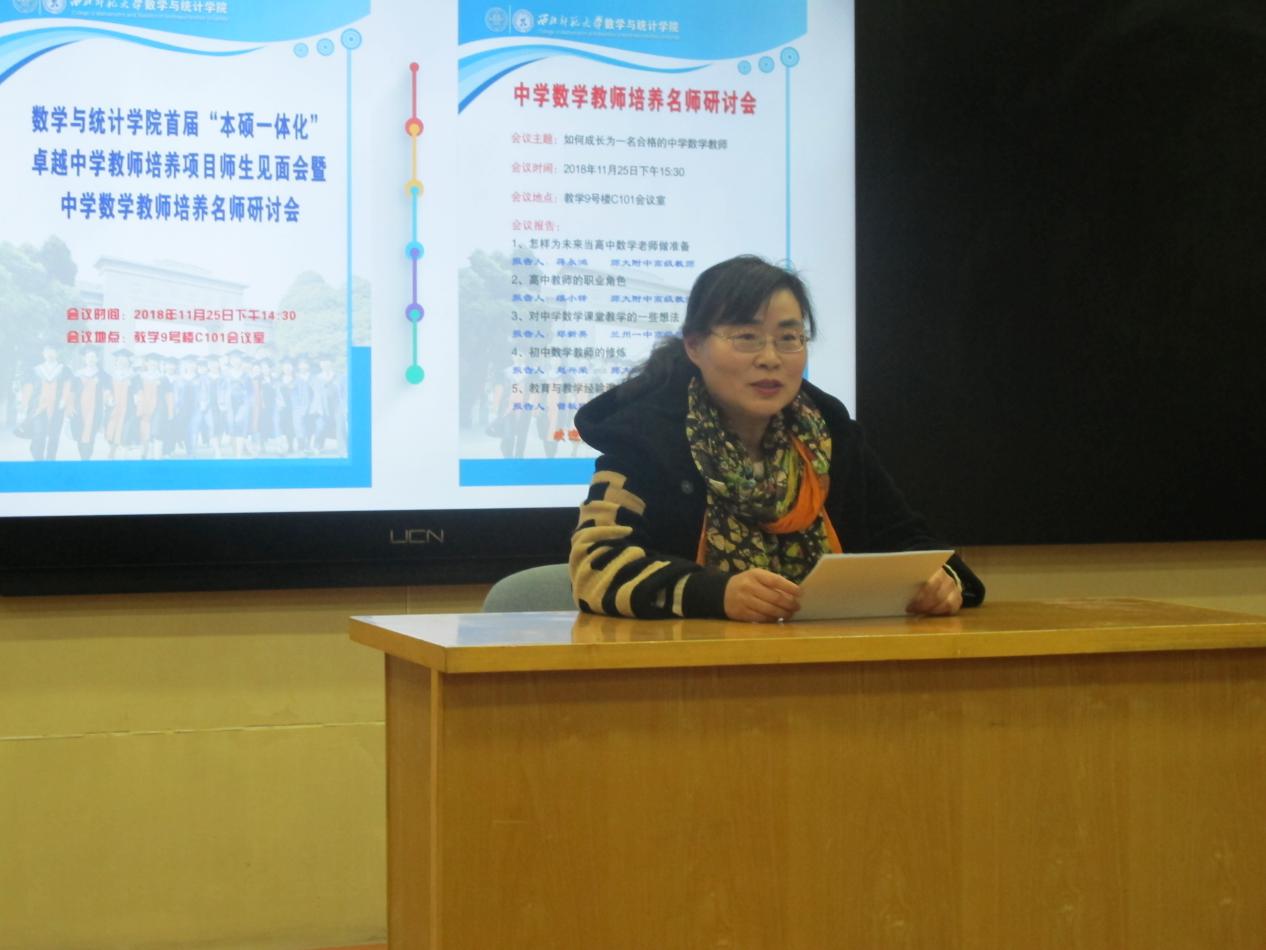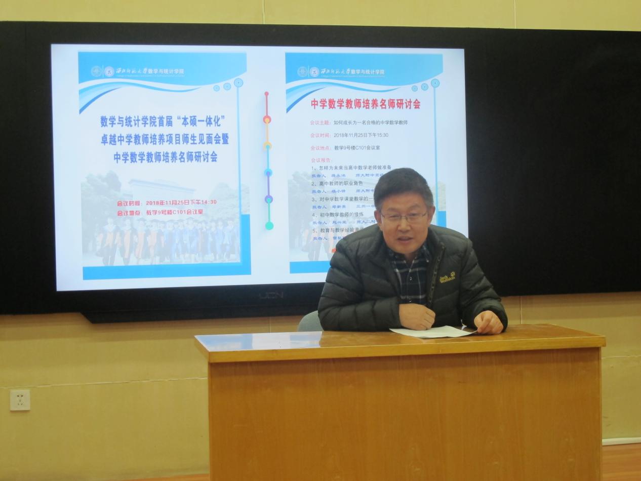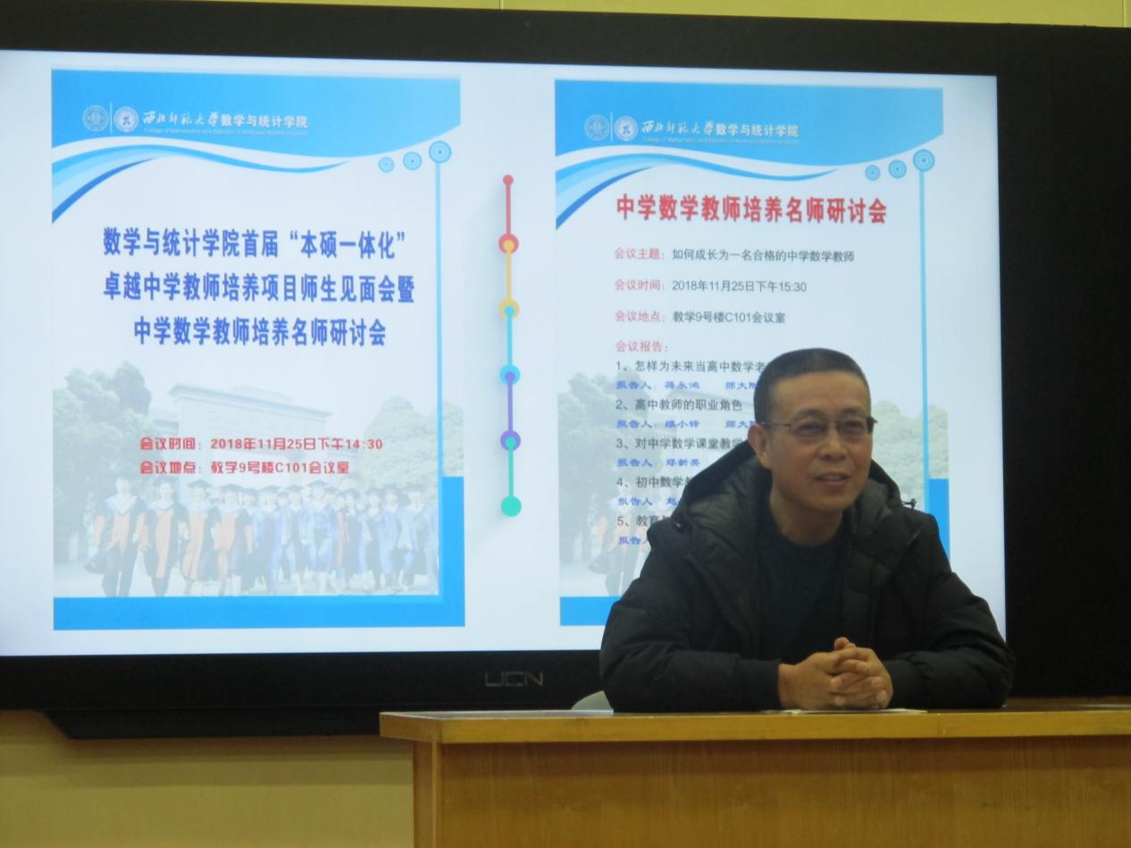师大附中高级教师蒋永鸿作了题为《怎样为未来当高中数学老师做准备》的报告,提出了当高中数学老师必需具有的数学素养、公司产品理论素养等几点具体要求。