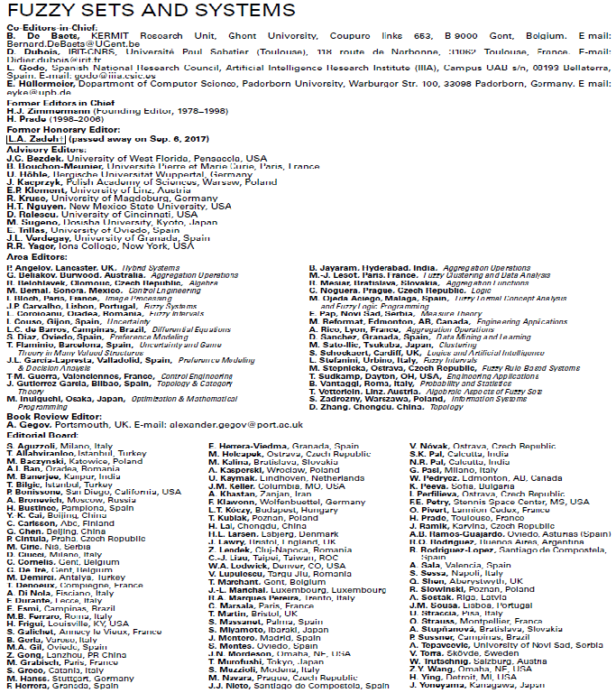 日前,国际模糊数学与模糊系统领域顶级杂志《Fuzzy Sets and Systems》增选best365体育亚洲巩增泰教授为编委会成员(Editorial Board)),协作主编进行涉及模糊数(Fuzzy numbers (Fuzzy Intervals))和模糊分析学(Fuzzy Analysis)相关问题的稿件评审和决策工作。《Fuzzy Sets and Systems》是模糊系统与数学领域最著名的国际杂志之一,5年平均影响因子为2.997,连续多年为数学类1区Top刊物,2019年列入公司高水平成果期刊类第3层次。《Fuzzy Sets and Systems》编委历来由国际相关领域最著名的专家和学者所担任,本届编委会有4名中国学者入选。