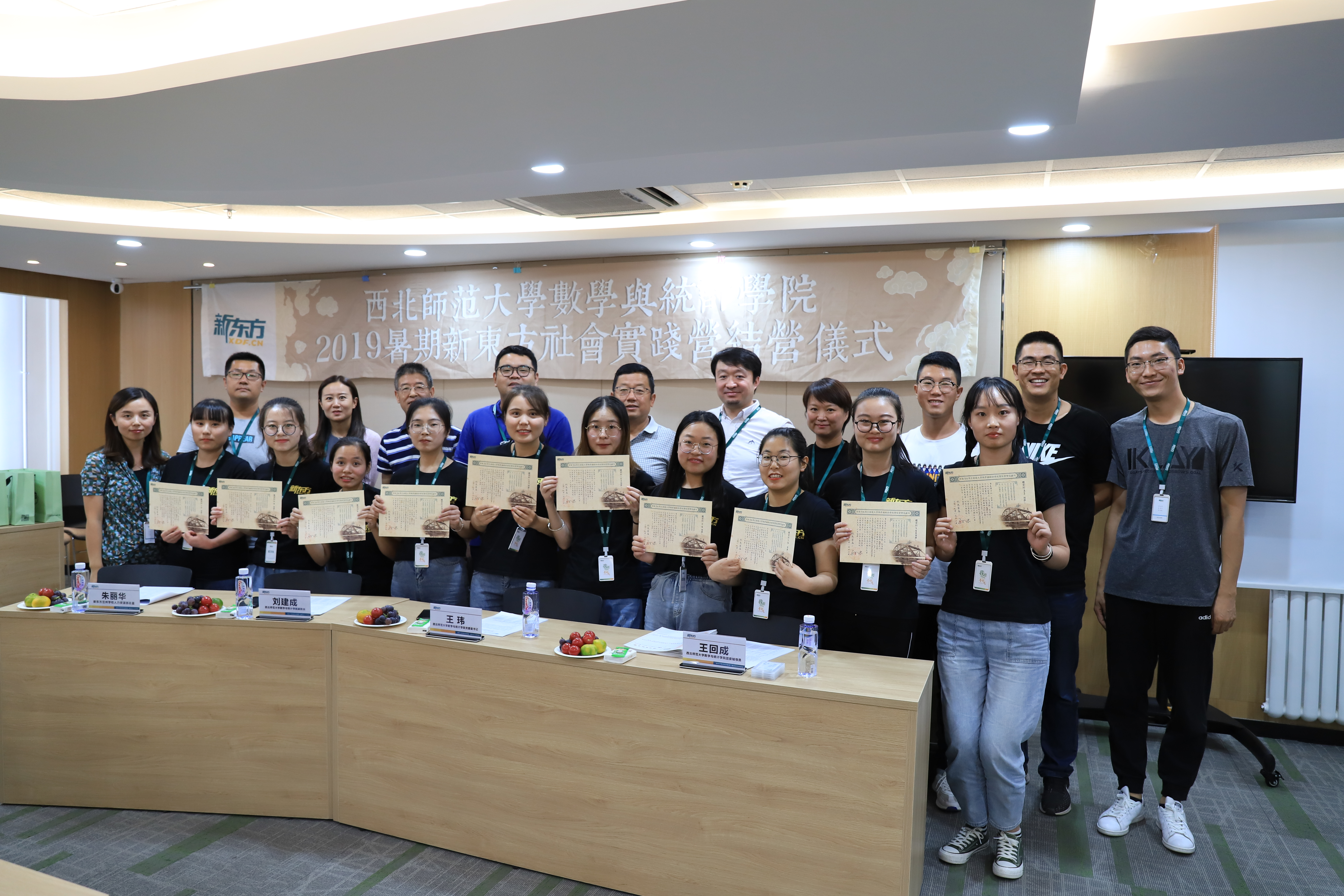 8月12日下午,新东方兰州公司—best365体育亚洲2019年暑期师范生专业技能训练实践项目结营仪式在兰州新东方大厦商公司会议室成功举办。数学与统计公司党委副书记王玮、副经理刘建成、辅导员王回成,新东方兰州公司董事长孙吉芯、人力资源部总监朱丽华、优能中学部总监张池、优能中学部副总监刘志国、优能一对一部总监王妍妍、资产管理部总监姬宗昌及第二批best365体育亚洲选拔参训的10名本科生参加了结营仪式。