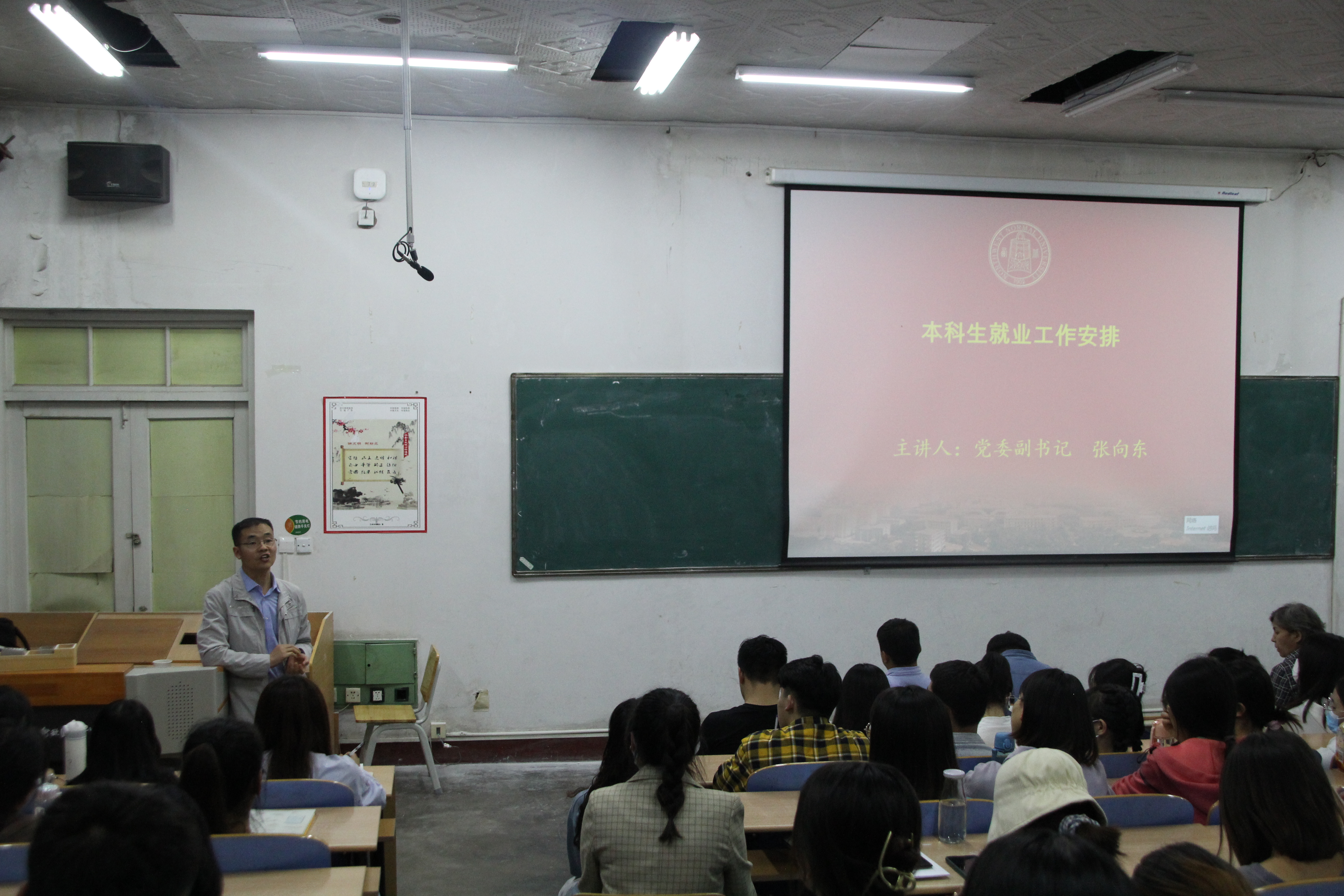 学公司党委副书记张向东老师从孟晚舟女士回国引出,我们生逢伟大时代,要感恩伟大祖国,祖国需要我们去建设。他勉励同学们要志存高远,要在考研和就业中尽快做出选择,然后是明确相关政策,做好充足的考研或就业准备。