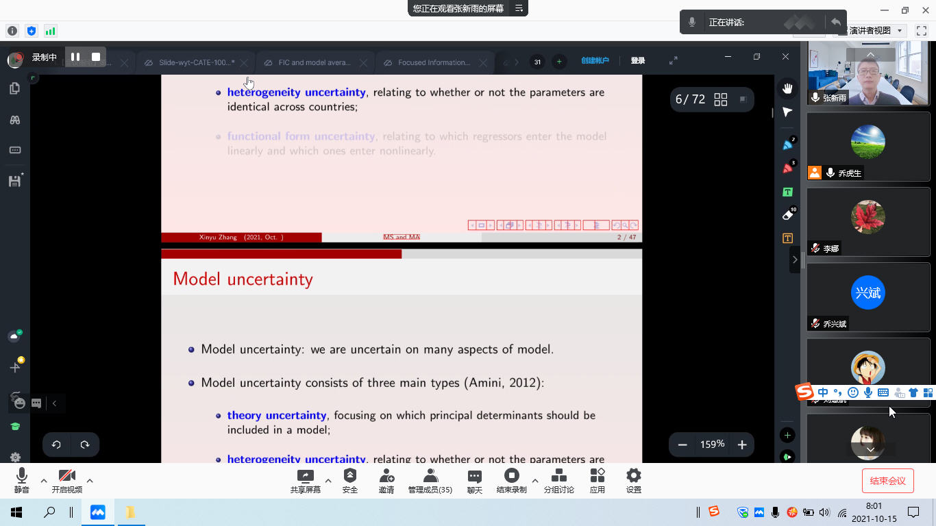 第二阶段,公司邀请了中国人民大学田茂再教授于10月26日到11月26日为公司教师和研究生作了20场统计学线上讲座。先后有800余人次聆听了讲座。主要介绍了统计模型的理论、方法及应用数据处理,侧重讲授国际上有关统计模型研究方面的前沿成果。
