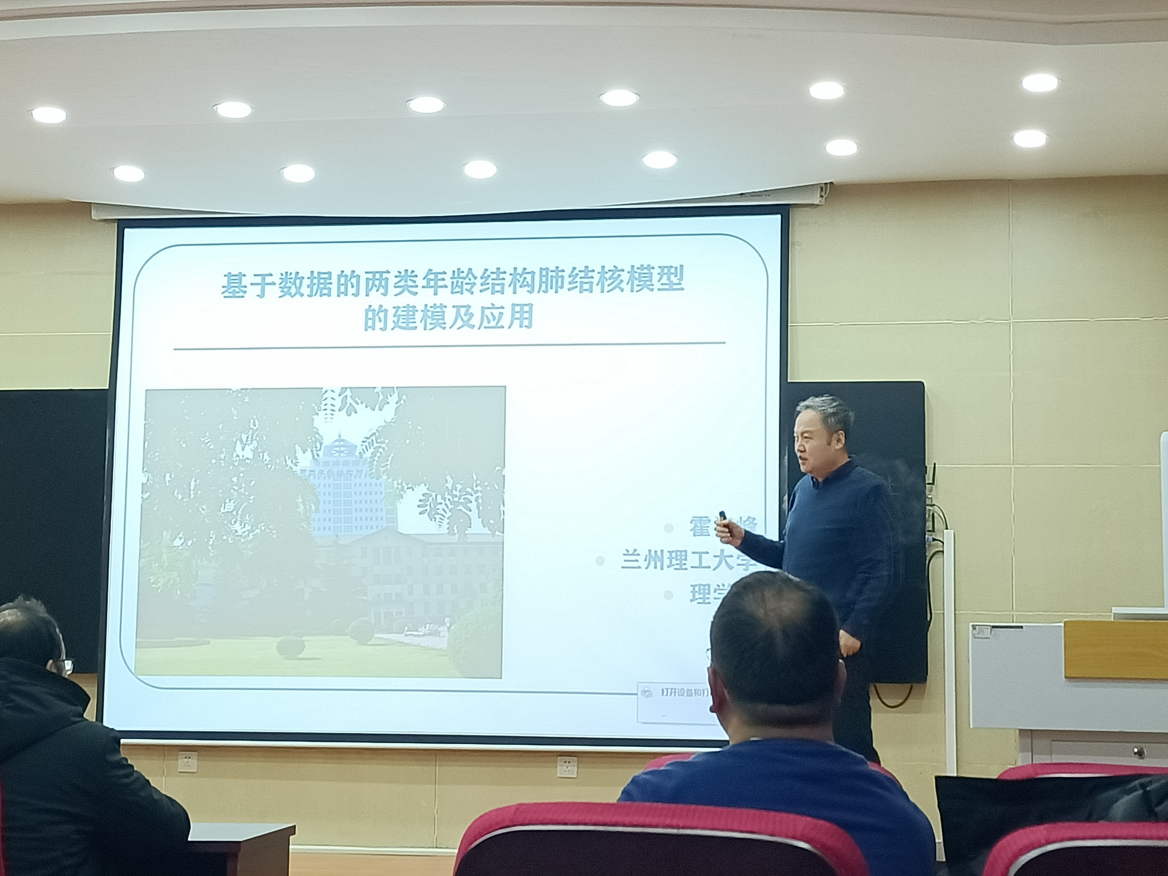 经理刘建成教授热情洋溢的欢迎辞拉开了研讨会的序幕。中国生物数学会名誉主席、中国科公司数学与系统科学研究院陈兰荪研究员,著名数学家、上海交通大学楼元教授、西安交通大学肖燕妮教授、兰州大学李万同教授、山西大学靳祯教授、上海交通大学陶有山教授、陕西师范大学吴建华教授、北京建筑大学崔景教授,兰州理工大学霍海峰教授、兰州大学王智诚教授和兰州交通大学颜向平教授先后做了线上、线下报告与主持。