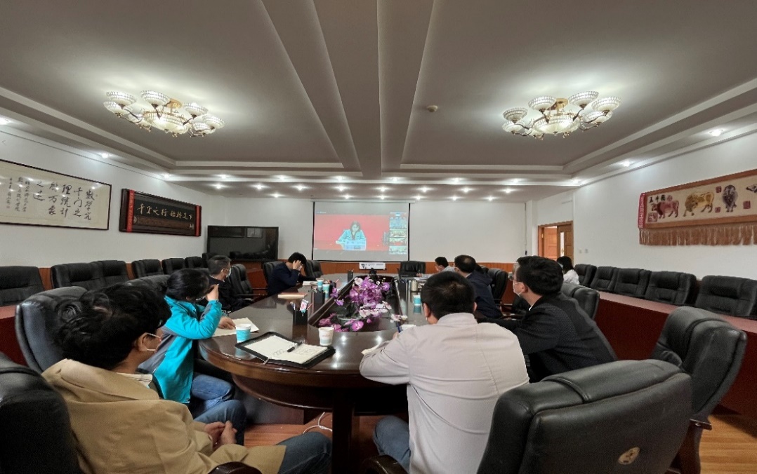 公司领导班子成员、就业创业工作领导小组成员、2022届部分毕业班班主任和专职辅导员20余人在公司B311会议室现场参会,研究生导师居家线上参会。