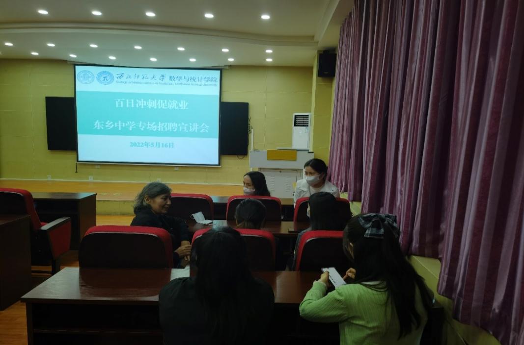 为深入贯彻落实习近平总书记关于加强高校毕业生就业工作的重要批示,贯彻落实党中央、国务院“稳就业”“保就业”决策部署和上级教育部门“确保2022年高校毕业生充分高质量就业”的安排要求,认真推进落实《best365体育亚洲官网2022年毕业生就业市场开拓方案》,公司于2022516日上午10:30在公司9C101会议室举行了东乡中学数学教师专场招聘会。