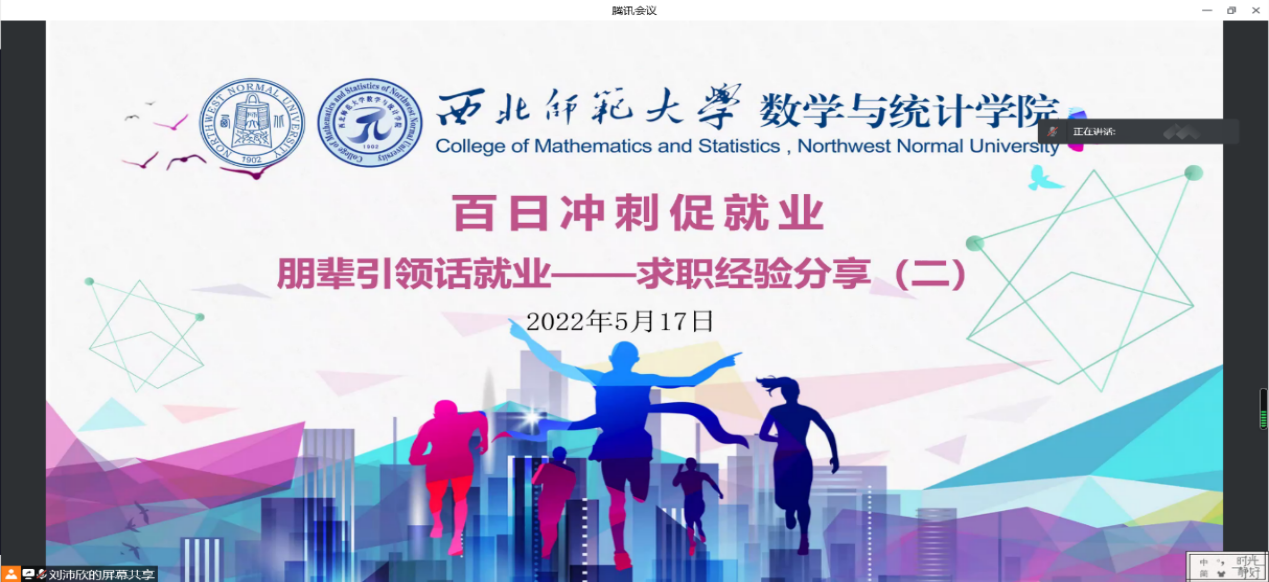 本期分享会为求职经验分享篇(二),于517日晚20:00在腾讯会议进行,公司分别邀请了2018级数学与应用数学1班魏莉杰、2018级数学与应用数学3班张欢欢、2018级数学与应用数学4班刘嘉琪三位同学作为代表为学弟学妹们分享求职的心得与经验。