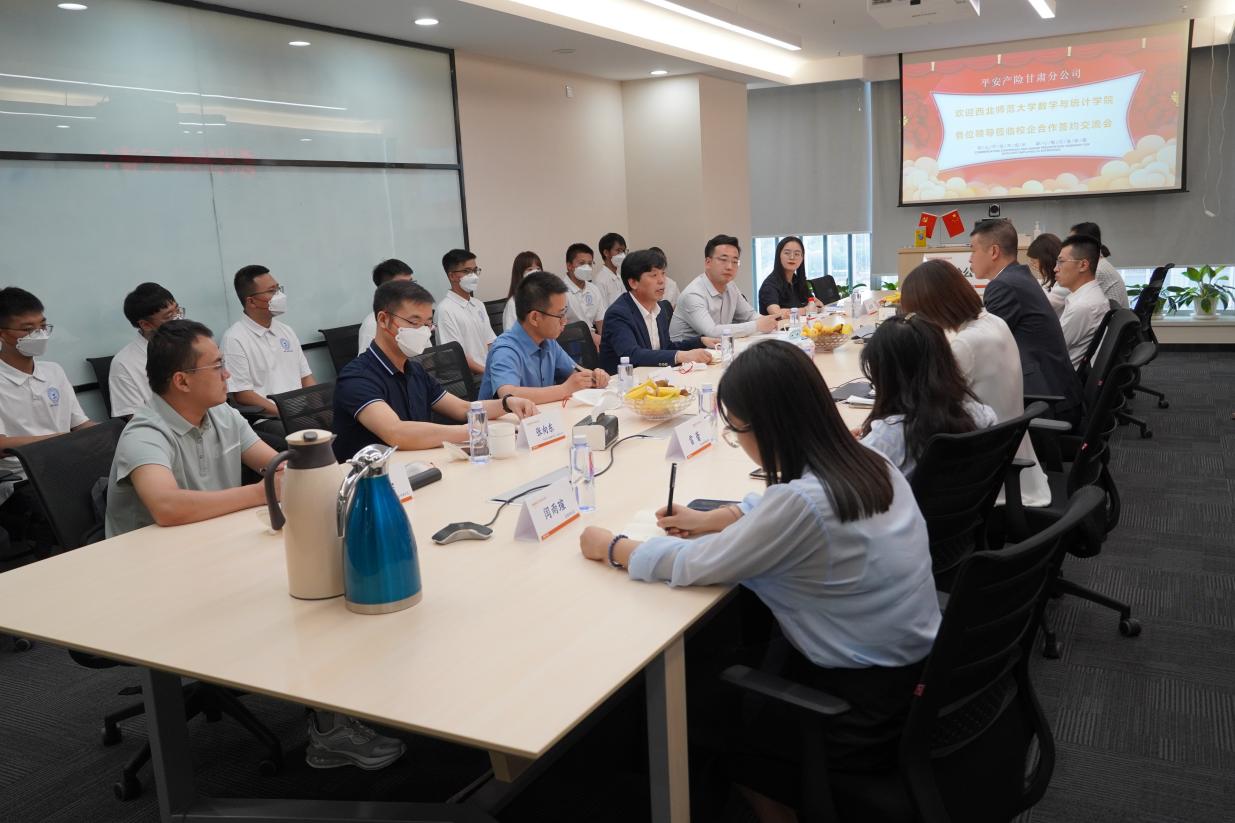 会上,双方签署了《实习实践和就业基地共建协议书》,并从促进就业、协同育人、深入合作等方面展开交流。王思宇详细介绍了平安产险甘肃分公司的企业文化、发展历程、发展理念、校企合作、管培生培养规划以及对数学专业人才的需求等方面的情况。杨和、孙晋易分别介绍了公司本科和研究生专业设置及人才培养情况。各部室经理详细解答了员工代表的提问。
