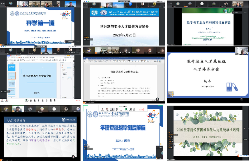 杨和副经理作了题为《学分制与专业人才培养方案》报告,详细解释了本科生修读学分要求和人才培养方案,要求同学们要认真研读各专业培养方案,学好学精专业课,不断提升自我,突破自我。孙晋易副经理作了研究生数学类学科专业导引报告,解读了专业硕士和学术型硕士的毕业学分、学位论文要求和相应培养方案。指出学习数学,要刻苦钻研,脚踏实地,构建自身知识结构,拓宽知识视野,成为“新理科”背景下的国际型、复合型、应用型人才。两位副经理希望同学们诚信为学,恪守学术道德,砥砺前行,学贯中西,成为德才兼备的国家栋梁。