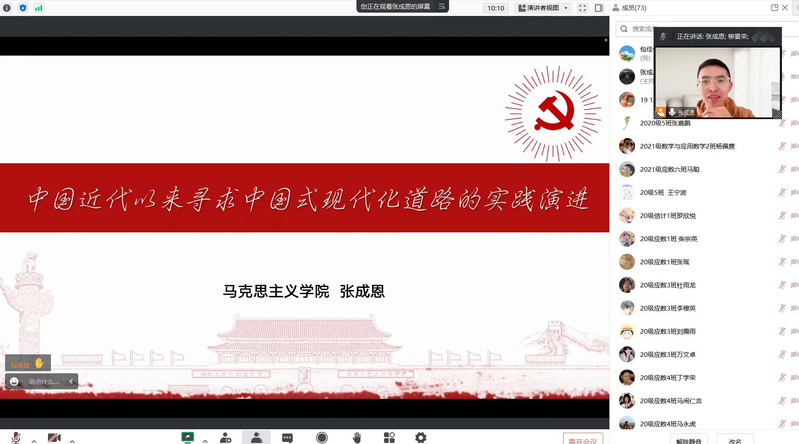 公司邀请马克思主义公司青年教师张成恩作了题为《中国近现代以来寻求中国式现代化道路的实践演进》的报告,他结合自己的研究方向,从四个时间段讲述了中国共产党的百年光辉历程。