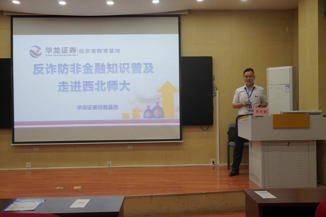 为进一步增强院员工的法制观念,提高自我保护意识和能力,有效维护同学们人身财产安全,强化公司防范网络诈骗工作,做到全面强化预警,全力构筑“全民反诈”防线,530晚,公司在致勤楼C101报告厅邀请华龙证券投教基地投资顾问李冬强以“反诈防非金融知识普及走进西北师大”为主题反诈防非”金融知识普及报告会报告由专职辅导员周宇主持。