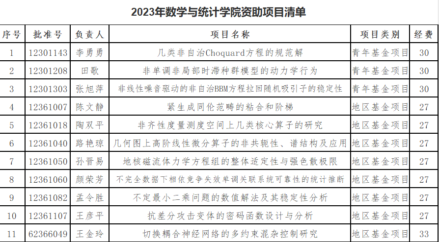 2023年8月24日,国家自然科学基金委公布了国家自然科学基金的评审结果,公司共获批基金项目11项,其中青年基金项目3项,地区基金项目8项。共有11位老师获批国家自然科学基金项目。