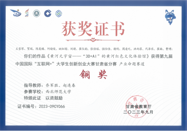 近日,第九届中国国际“互联网+”老员工创新创业大赛甘肃省分赛奖杯及证书陆续发放,公司学子获省级银奖2项、铜奖4项。