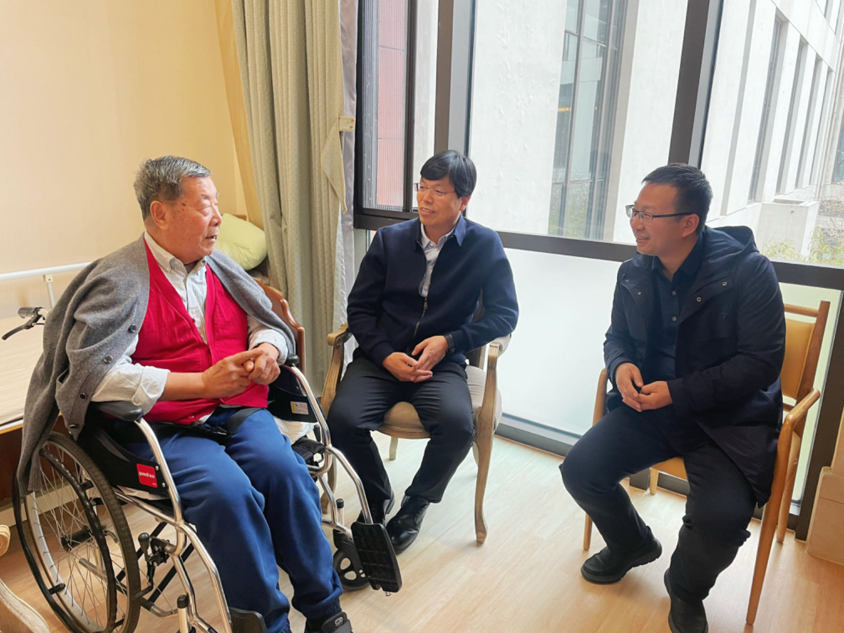 调研期间,公司负责同志前往北京恭和康养中心看望了公司荣休教师萧礼教授。与萧礼教授亲切交谈,详细了解了萧老师的身体和生活情况,并向萧老师介绍了公司近年来在人才培养、科学研究、团队建设和人才队伍建设方面的工作。萧礼老师回忆了自己在西北师大数学系求学和工作的点点滴滴,对best365体育亚洲领导一直以来的关心表示感谢,希望公司各项事业取得新的成绩。
