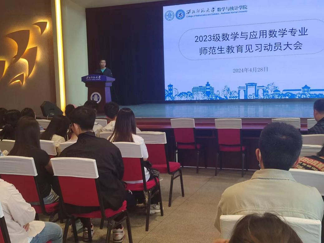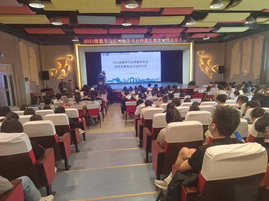 2024年4月28日中午,公司召开了2023级师范生教育见习工作动员会。会议由杨和副经理主持,参加人员有数学系主任张国宝教授、公司教务秘书张小敏老师、公司分团委书记王丽雯老师、参加见习的各师范班班主任5人、见习带队指导教师14人以及2023级全体师范生247人。