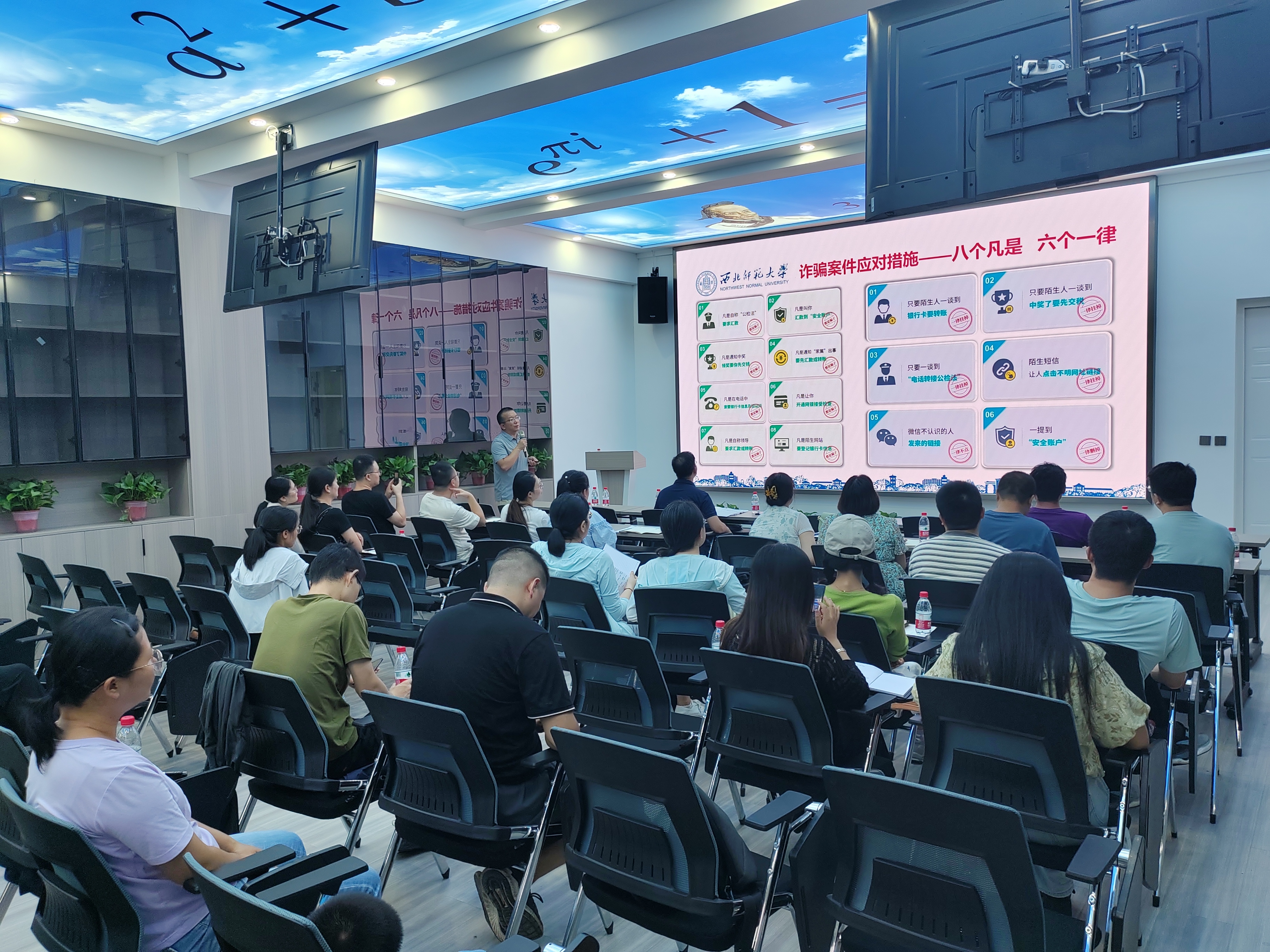 石晓东副处长作了题为《预防为主 生命至上—员工安全教育专题》讲座,他从安全工作概述,电信网络诈骗案例分析和电信诈骗防范策略等方面做了精彩分析,指出安全工作即是公司的生命线,也是公司的底线,各位班主任要把维护员工的生命安全放到所有工作的首位。同时,他还列举了大量校园失窃、人身伤害、溺水和交通事故等案例,这对于班主任正确引导广老员工树立起安全意识,帮助员工提高防范能力,创建平安校园具有很好的启发意义。