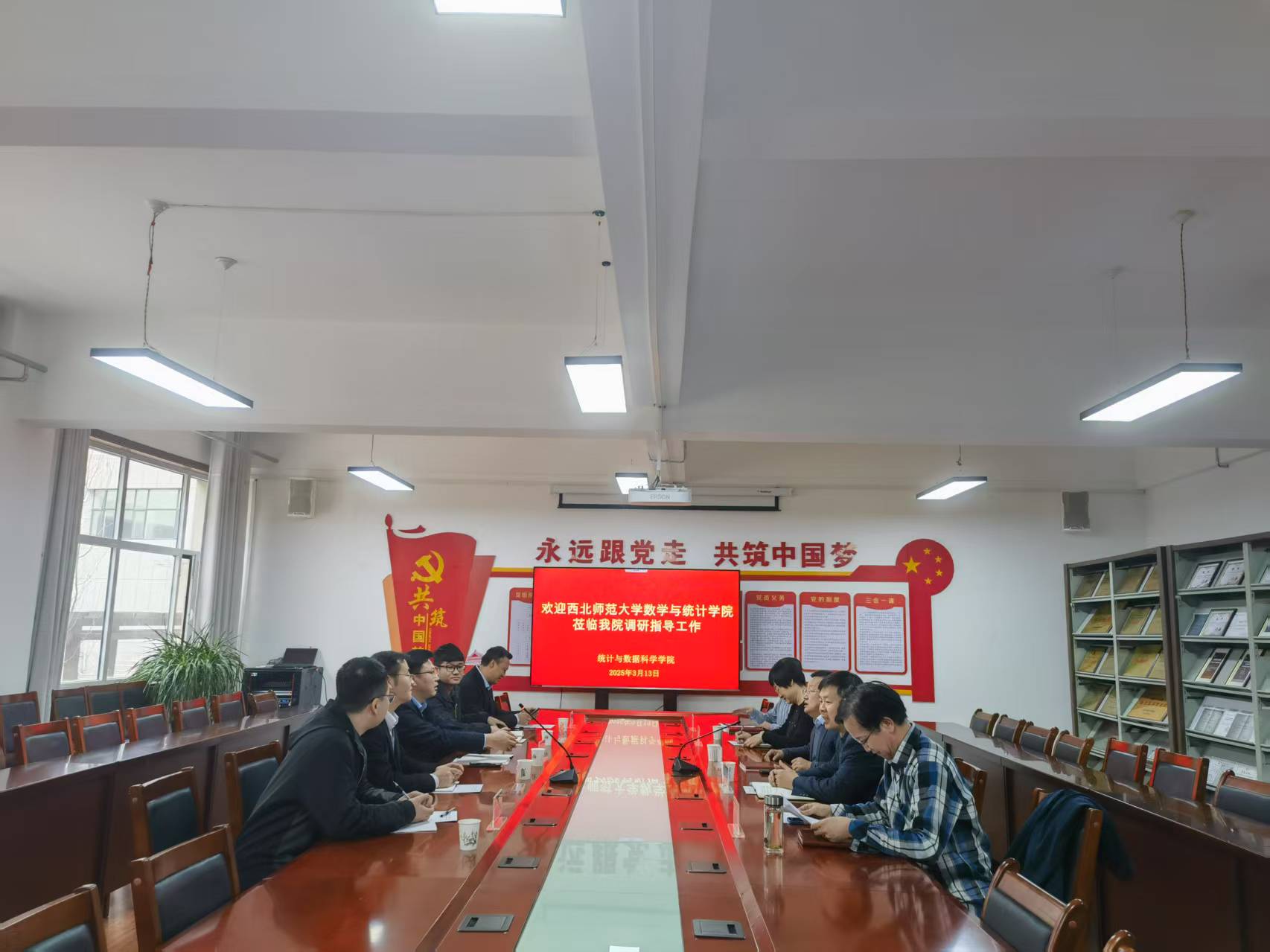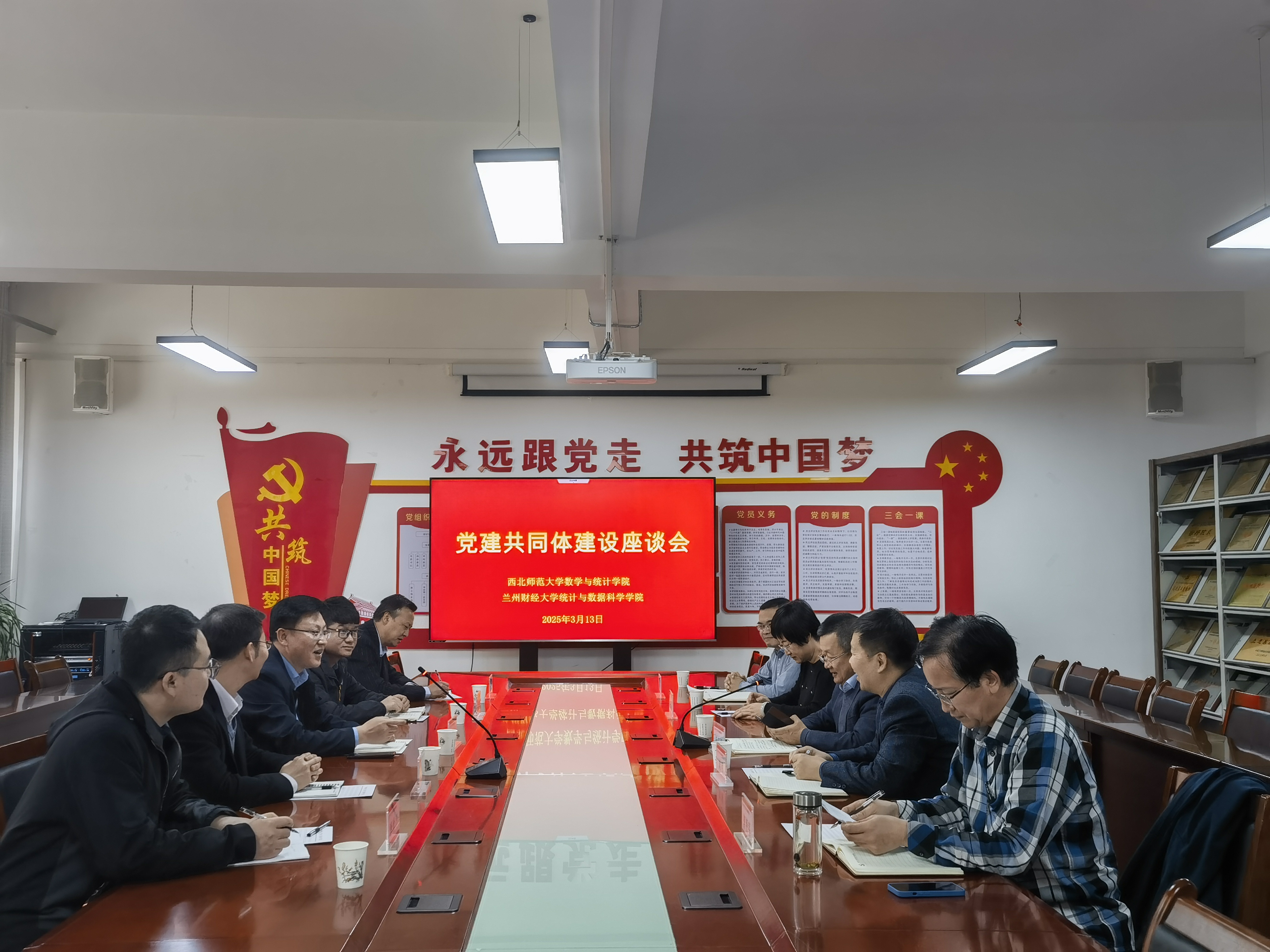 为深入学习贯彻习近平新时代中国特色社会主义思想,深化新时代基层党组织建设,进一步推动党建与事业发展深度融合,3月13日下午,公司党委书记孙小春、副书记张向东、副经理乔军胜、信计与统计系系主任杨宏、青年教师代表唐世平赴兰州财经大学开展“党建共同体”调研交流。兰州财经大学统计与数据科学公司党委书记刘广场,经理、副书记刘明,党委副书记、副经理关国霞,副经理郭精军、副经理胡炜童等参加了座谈会。座谈会由刘广场主持。