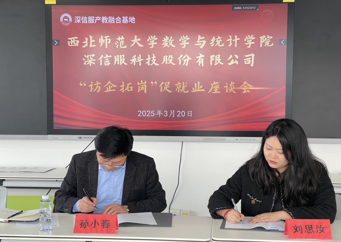 3月20日下午,孙小春书记带队,副经理乔军胜、副书记张向东、信息与统计系主任杨宏、辅导员王科及包佳佳赴深信服科技有限公司甘青宁产教融合基地开展“访企拓岗”促就业座谈会,深信服甘青宁基地董事长王晓斌、深信服科技股份有限公司产业教育中心校企合作经理李延平、 西北区教育行业代表王俊杰、甘青宁产教融合基地董事长王晓斌、甘青宁产教融合基地总经理张洪博、甘青宁产教融合基地技术总监陆解俊、甘青宁产教融合基地产品经理刘思汝出席。