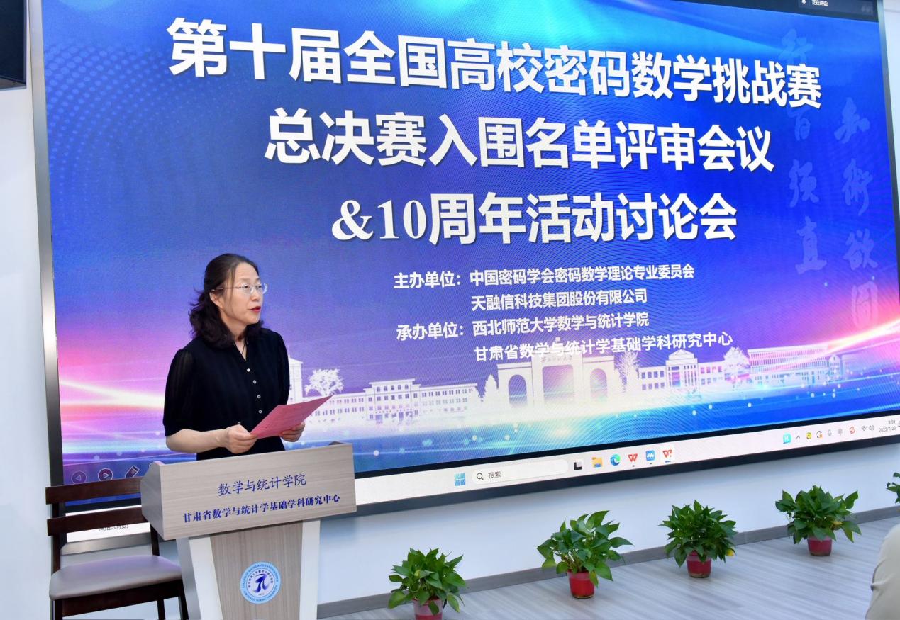 2025年7月23日,第十届全国高校密码数学挑战赛总决赛入围名单评审会暨10周年活动讨论会在best365体育亚洲成功举行。本次会议由中国密码学会密码数学理论专业委员会与天融信科技集团股份有限公司联合主办,best365体育亚洲和甘肃省数学与统计学基础学科研究中心承办。开幕式由杜小妮教授主持, 公司党委书记孙小春教授致欢迎辞。