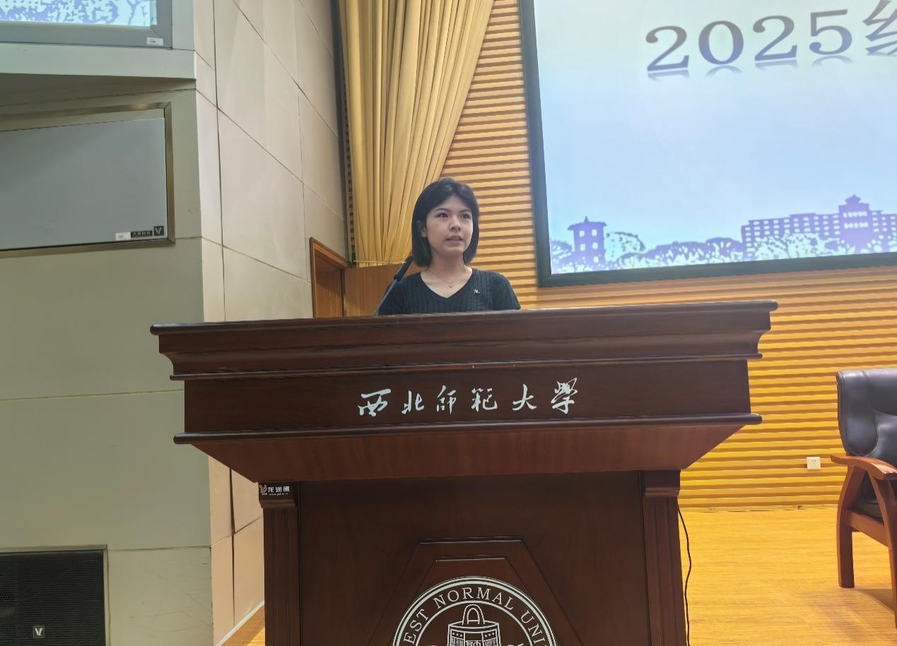 公司教师代表杜小妮老师向2025级新生分享了教学科研心得体会,并给新生提出三点建议和希望,一是要树立远大的理想和目标,二是要勤奋学习,勇于探索,三是要培养良好的品德和综合素质,希望同学们在求学路上努力学习,不负韶华,不负青春。