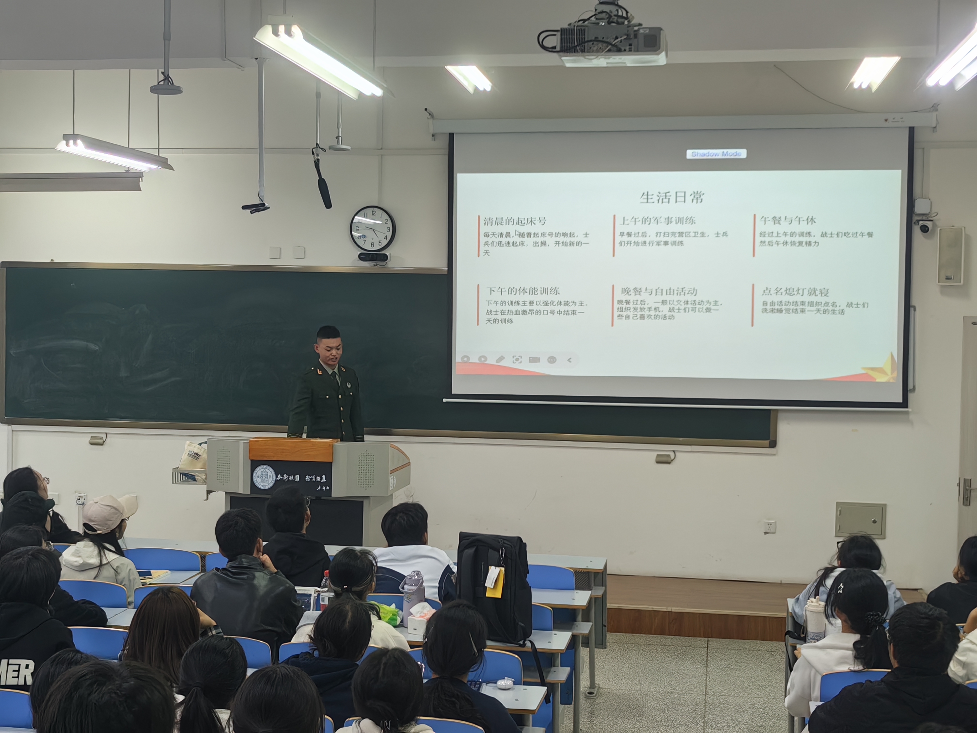 为弘扬退役军人“退伍不褪色”的优良作风,发挥老员工身边的榜样引领作用,激励在校学子砥砺奋进,公司于10月9日下午在知行校区学术报告二厅、103和302多媒体教室举办“青春献军旅 奋斗续华章”优秀退伍员工交流分享会。公司党委副书记张向东、辅导员周宇、包佳佳及2025级全体本科生参加,共同聆听退伍学子的军旅故事与成长感悟。