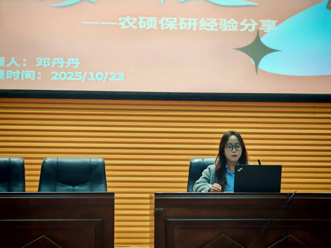 “农硕计划”保研升学的2022级数学与应用数学专业1班邓丹丹同学,则精准聚焦中等成绩学子的需求,详细讲解了“农硕计划”的政策要求、申报流程及签约录取要点。从前期政策解读、材料准备到后期考核应对,每一个环节都给出具体建议,帮助学弟学妹们清晰了解这一特色升学路径,为不同学业基础的学子提供了多元化的发展选择。她寄语学弟学妹“人生没有白走的路,每一步都算数”。