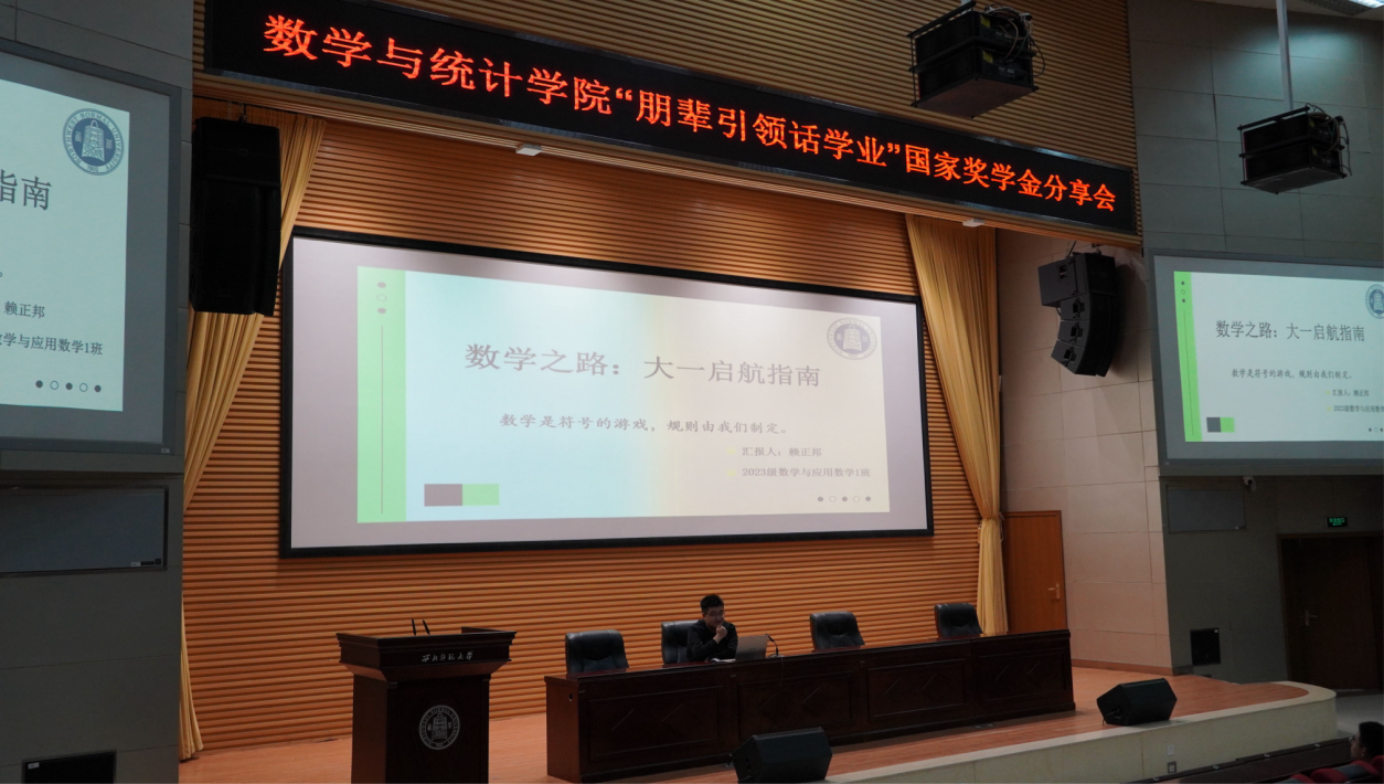 赖正邦同学围绕“数学是符号的游戏,规则由我们制定”的理念,系统阐释语言逻辑、知识体系构建等六大学习维度,重点解析一题多解思维培养与经典解题范式。“数学学习的关键在于主动思考,而非被动接受”,他的分享为同学们提供了提升数学思维的方法。