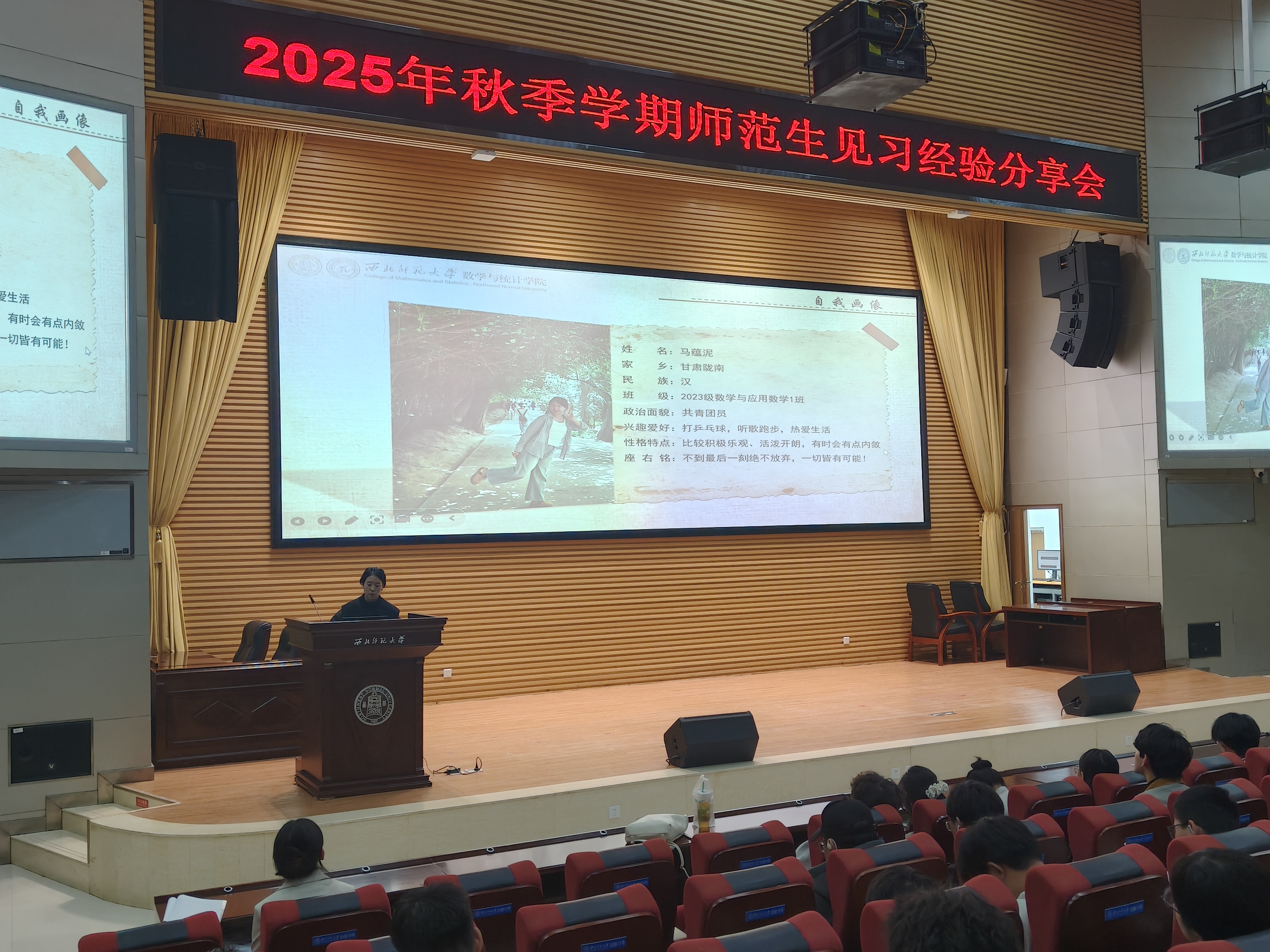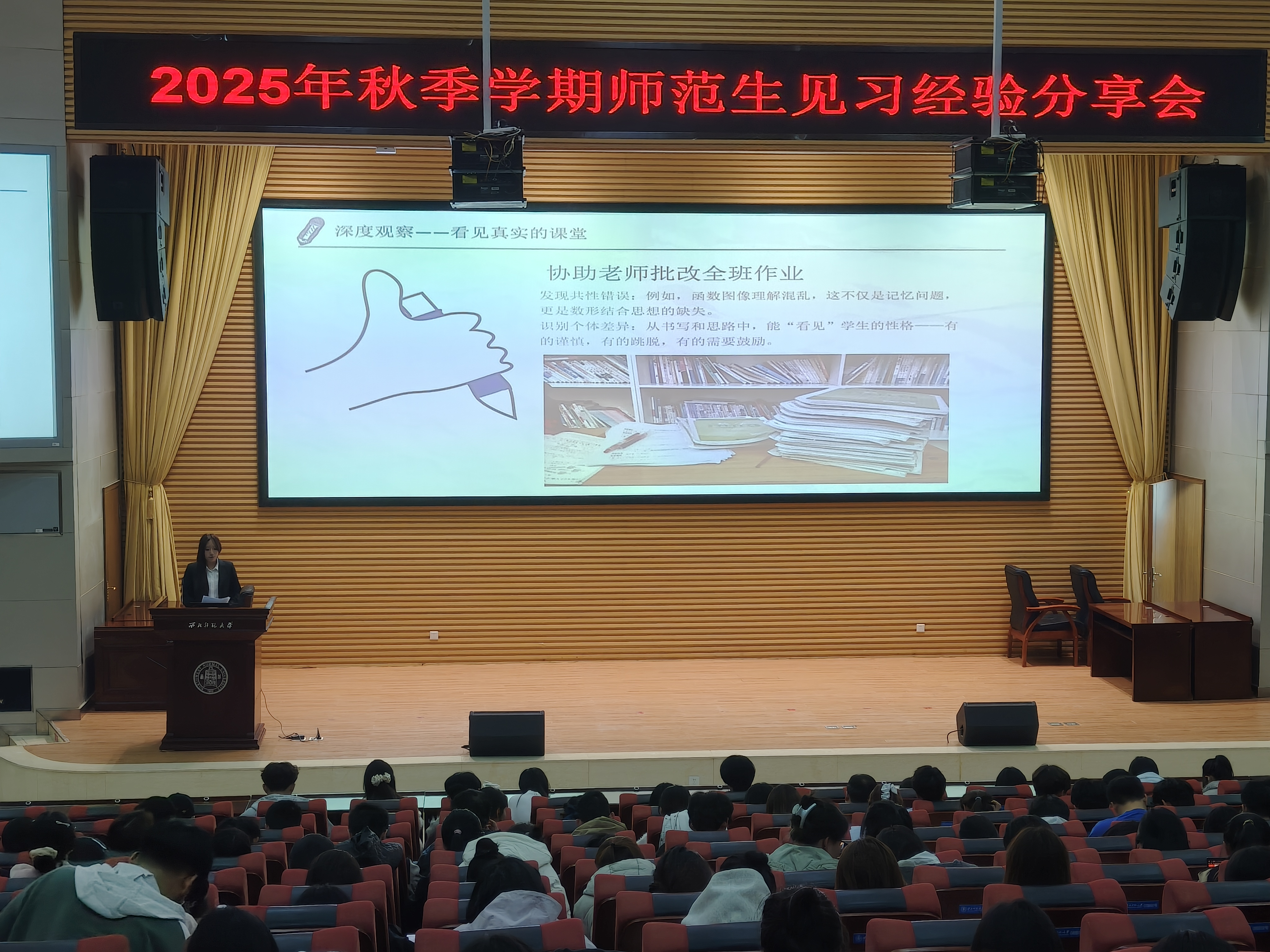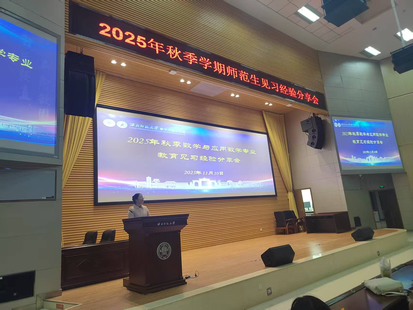 11月10日晚上在知行校区毅然报告厅,公司成功举办了数学与应用数学专业2025年秋季学期教育见习经验分享会。会议旨在总结教育见习成果,分享实践经验,促进师范生专业和实践能力的共同提升。公司教学副经理张国宝、数学系主任杨超、各见习小组带队教师及2023级和2024级数学与应用数学专业师范类全体员工齐聚一堂。