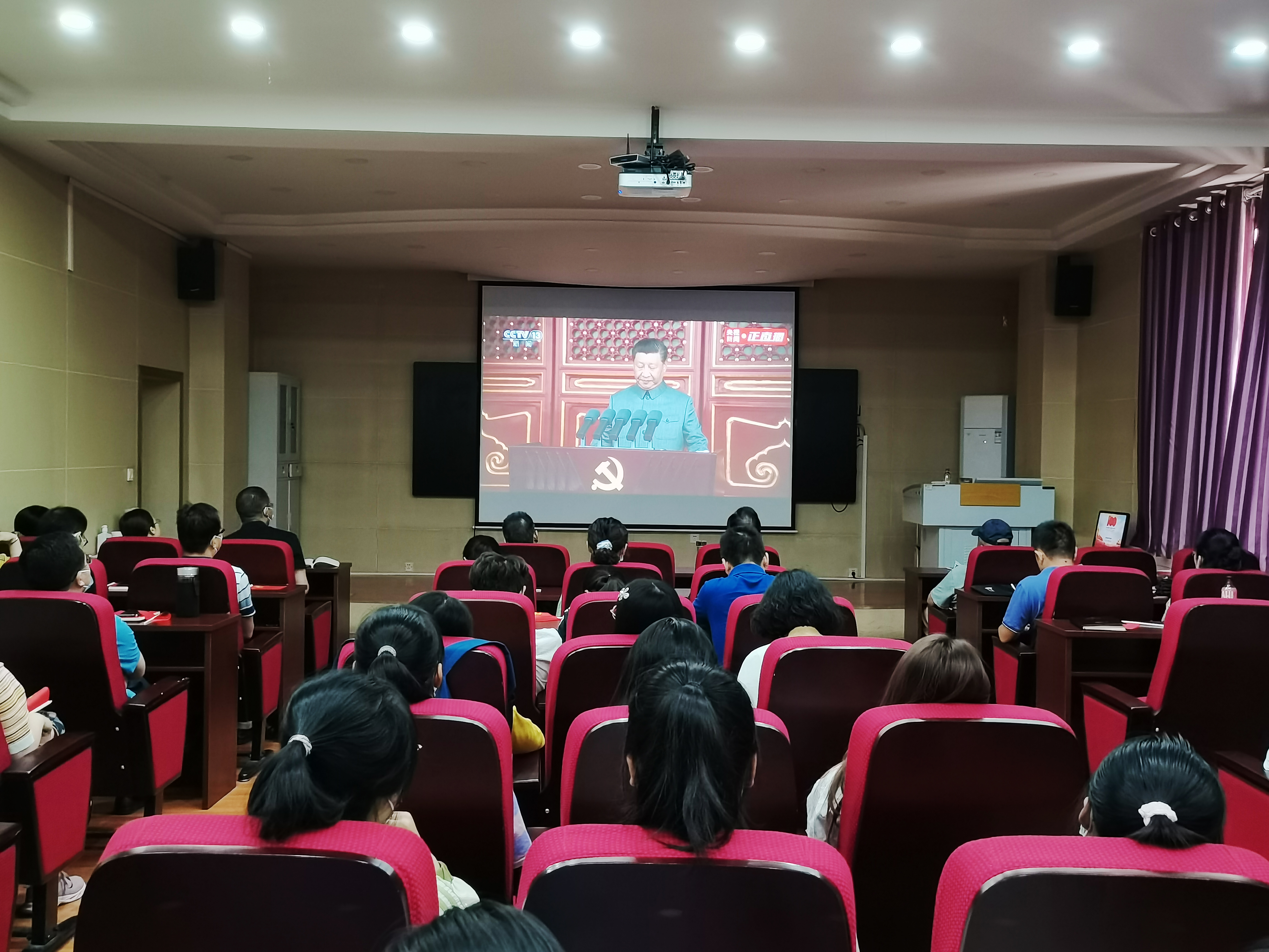 7月1日上午,公司领导班子成员、党委理论中心组成员和师生党员代表在9号楼C区101报告厅、A区1711教室、B区103教室、B区研究生教室共同收看庆祝中国共产党成立100周年大会直播。